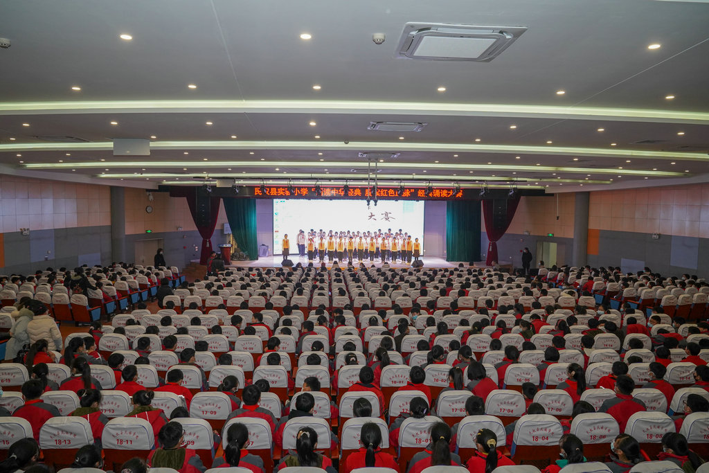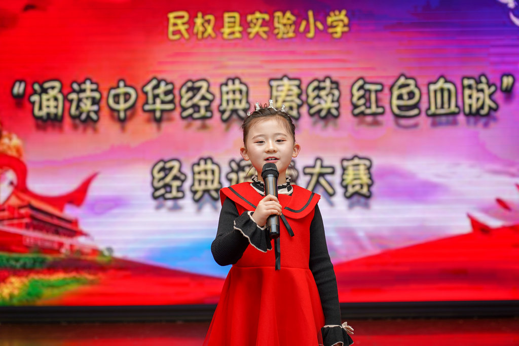 2021年12月24日,民权县实验小学为期一周的“诵读中华经典 赓续红色血脉”经典诵读大赛落下帷幕。学校76个班级以年级为单位分场进行了比赛。孩子们用经典诗词,回望激情燃烧的岁月,用赤诚的心曲缅怀革命先驱不朽的足迹,用艺术的舞台,聆听国学经典的温馨,用仰慕的情怀感受历史蕴含的诗风词韵。