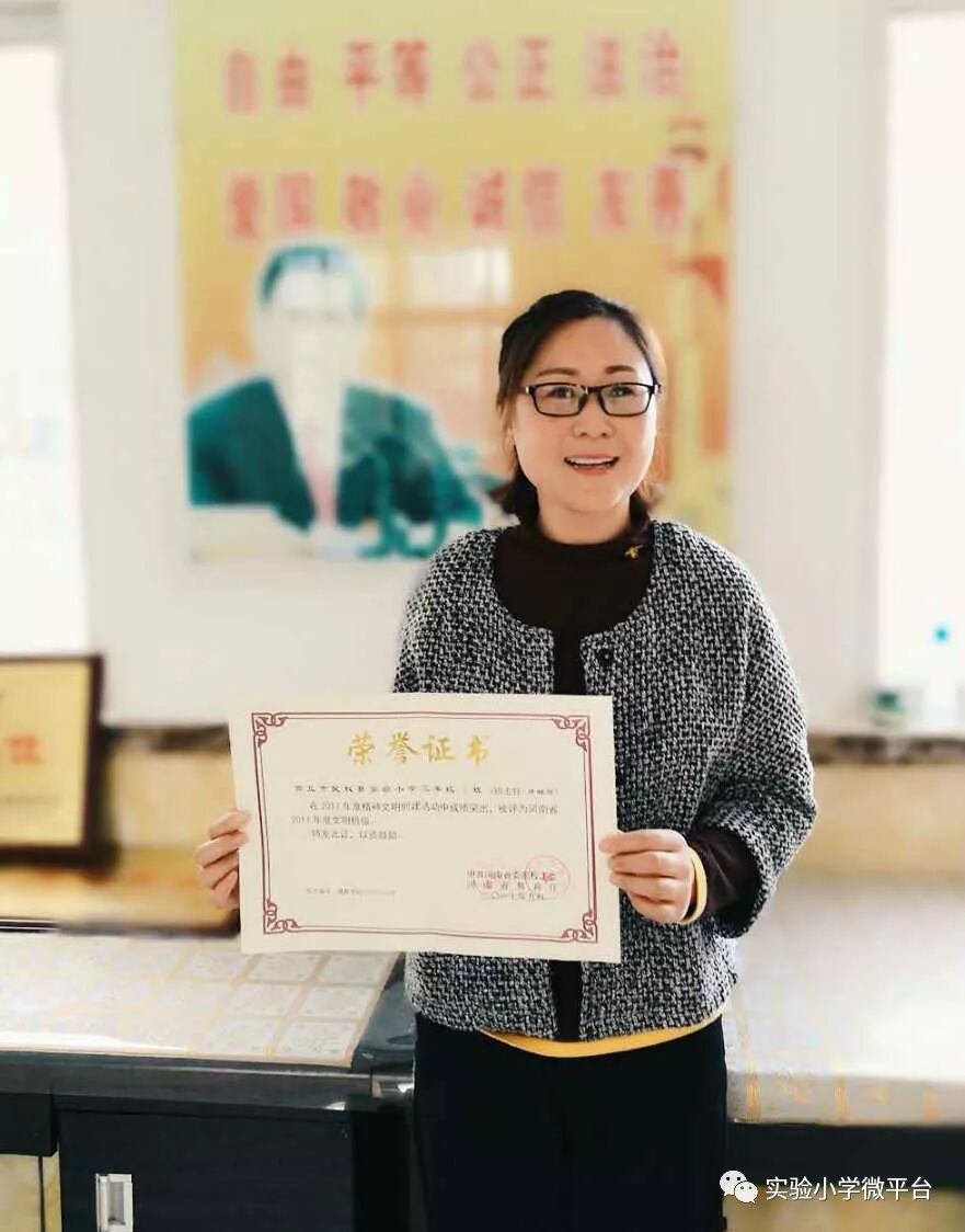 自1998年参加工作以来,许老师一直担任班主任工作。她敬业爱生、勤学乐教,始终以优秀教师的标准严格要求自己。她坚持采用丰富多彩的形式对学生进行爱国爱校、团结友善、勤奋乐学等方面的教育,因此班里的孩子们都能积极完成各项任务,参与各种文体活动,孩子们具有较强的自我管理能力。许老师所带班级学生都有强烈的集体荣誉感,师生凝心聚力,在实验小学星级班级评比中一直名列前茅。