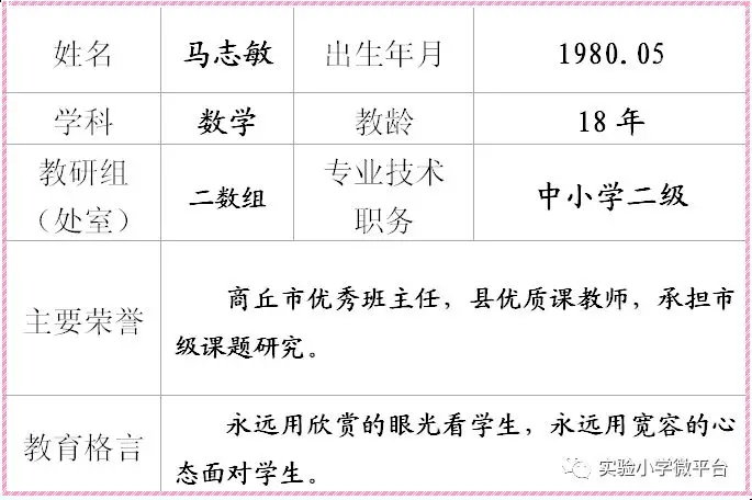 马志敏,中小学二级教师,商丘市优秀班主任,县优质课教师,承担市级课题研究已结题。